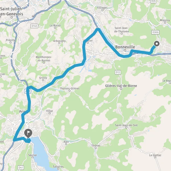 Au rond-point, prendre la 1ère sortie sur D19 (Route de Bonneville) et continuer sur 4 kilomètres