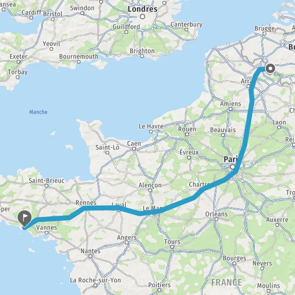 Continuer N24 (Route de Lorient) sur 132 kilomètres