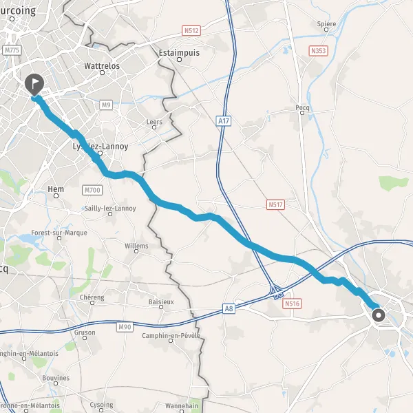 Tourner légèrement à droite sur N509 (Chaussée de Lannoy) et continuer sur 6,5 kilomètres