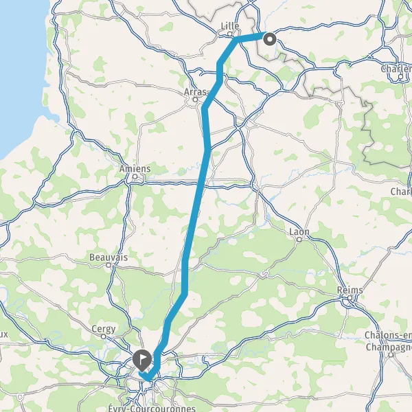Continuer E17 (Autoroute du Nord) sur 173 kilomètres