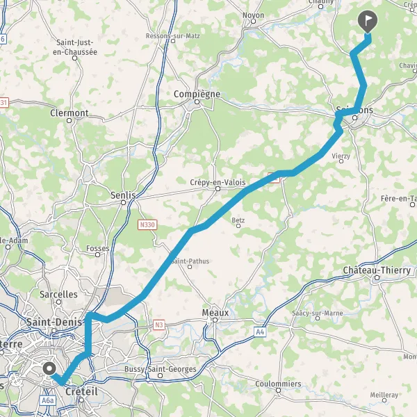 Tourner à droite sur D13 (Route de Saint-Gobain) et continuer sur 2,6 kilomètres