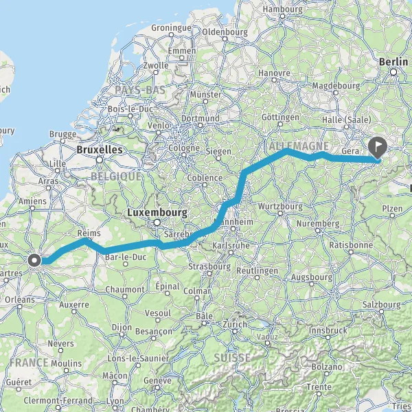 Prendre à droite et rejoindre A4. Continuer sur 260 kilomètres