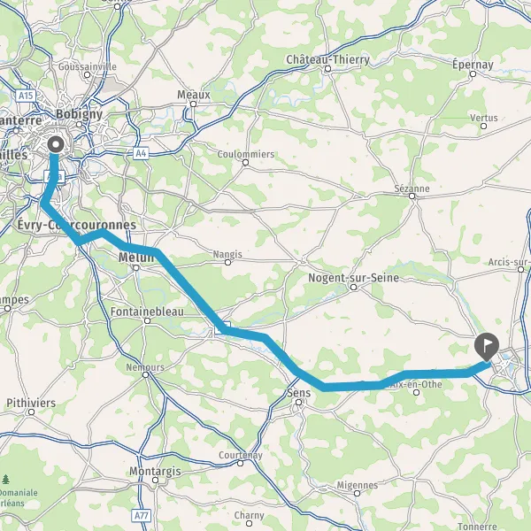 Itinéraire en voiture de Paris 75001-75116 à Rue de Prague, 10300 Sainte-Savine