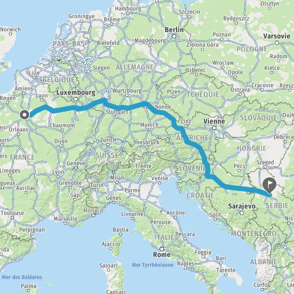 Sortir et rejoindre Bulevar Arsenija Čarnojevića. Continuer sur 80 mètres