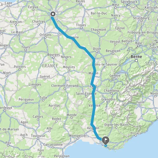 Prendre à droite et rejoindre A6a E5. Continuer sur 296 kilomètres