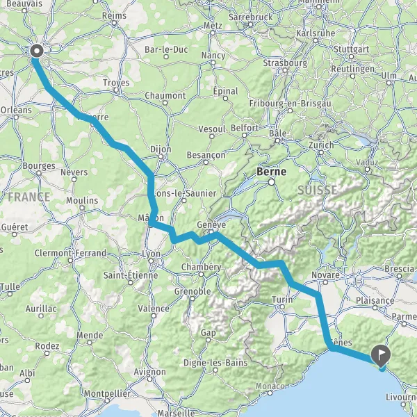 Prendre à droite et rejoindre A6a E5. Continuer sur 296 kilomètres