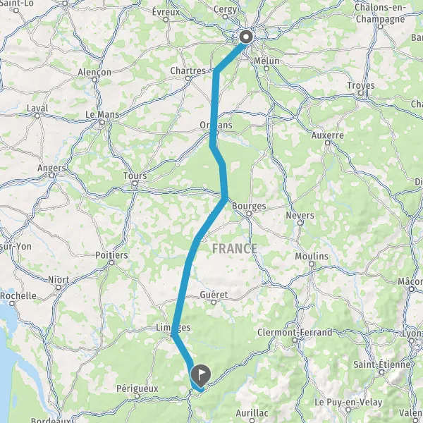 Prendre à droite et rejoindre A20. Continuer sur 251 kilomètres