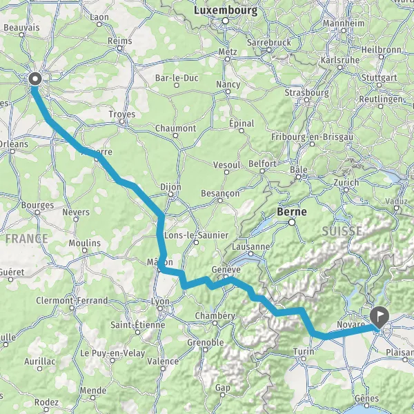 Prendre à droite et rejoindre A6a E5. Continuer sur 296 kilomètres