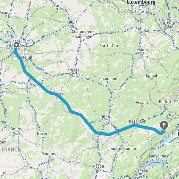 Prendre à droite et rejoindre A6a E5. Continuer sur 296 kilomètres