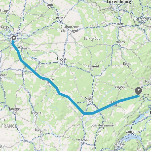 Prendre à droite et rejoindre A6a E5. Continuer sur 296 kilomètres