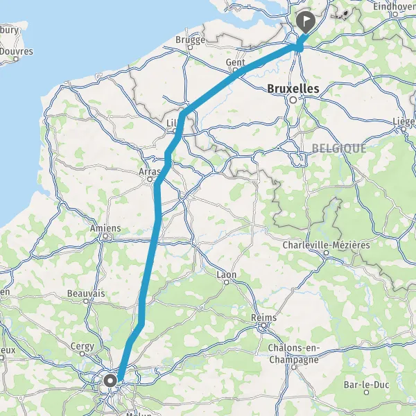 Prendre à gauche et rejoindre A22 E17. Continuer sur 12 kilomètres