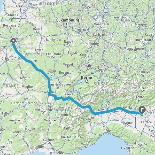 Prendre à droite et rejoindre A6a E5. Continuer sur 296 kilomètres