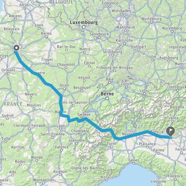 Prendre à droite et rejoindre A6a E5. Continuer sur 296 kilomètres