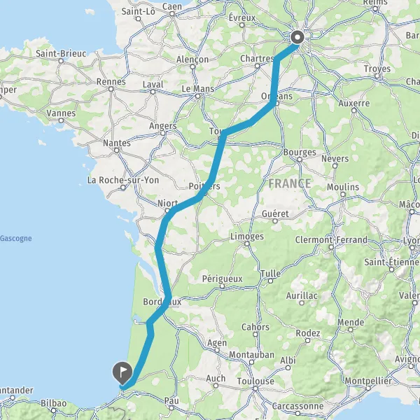 Prendre à droite et rejoindre A63. Continuer sur 154 kilomètres