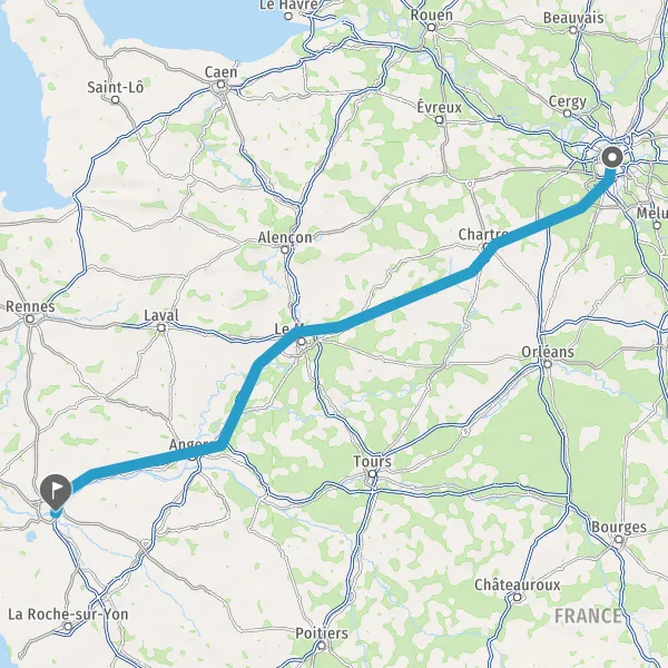 Prendre à droite et rejoindre A11 E50. Continuer sur 147 kilomètres