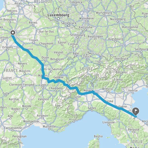 Prendre à droite et rejoindre A6a E5. Continuer sur 258 kilomètres