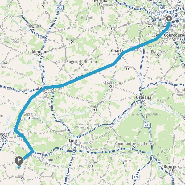 Prendre à droite et rejoindre A11 E50. Continuer sur 147 kilomètres