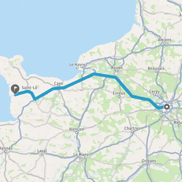 Prendre à droite et rejoindre A84 E401. Continuer sur 45 kilomètres