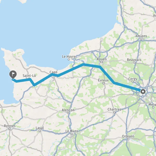 Prendre à droite et rejoindre A84 E401. Continuer sur 45 kilomètres