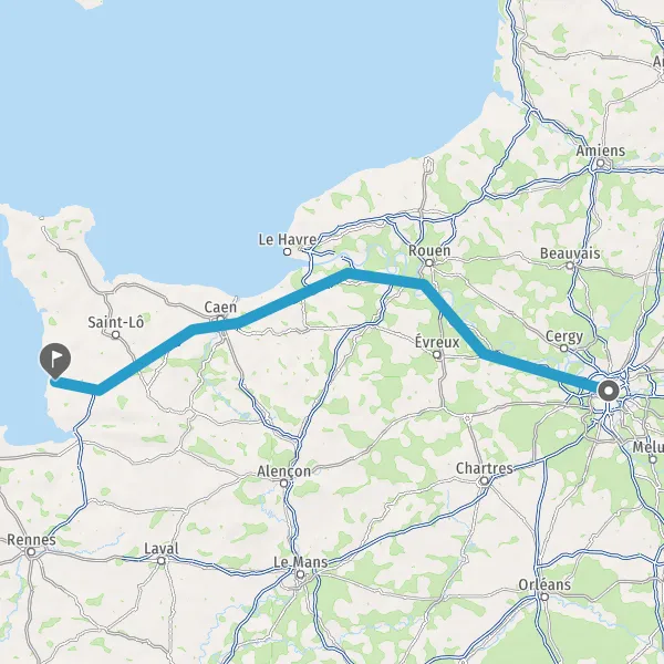 Prendre à droite et rejoindre A84 E401. Continuer sur 72 kilomètres