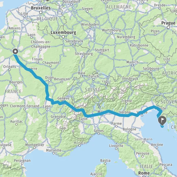 Prendre à droite et rejoindre A6a E5. Continuer sur 296 kilomètres