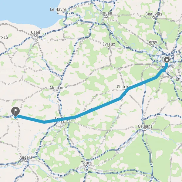 Prendre à droite et rejoindre A11 E50. Continuer sur 147 kilomètres