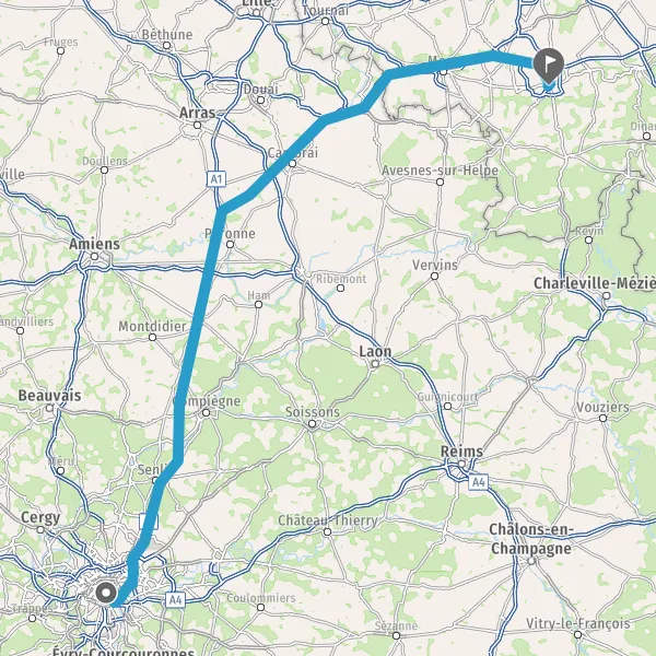 Continuer et rejoindre A1 A1 E15 E19. Continuer sur 121 kilomètres