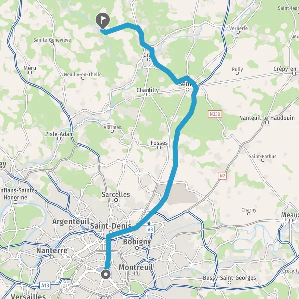 Au rond-point, prendre la 2ème sortie sur D1330 (Route Nationale de Creil à Meaux) et continuer sur 1,5 kilomètre