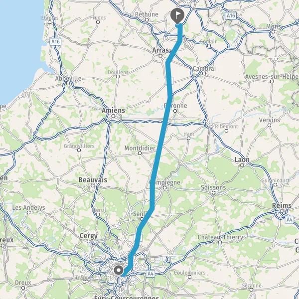 Continuer et rejoindre A1 A1 E15 E19. Continuer sur 121 kilomètres