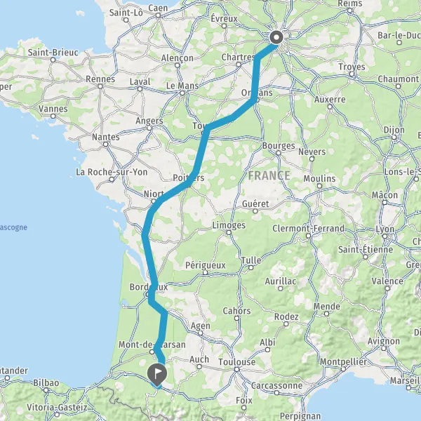 Trajet de Paris (75000) à Pau (64000) en voiture