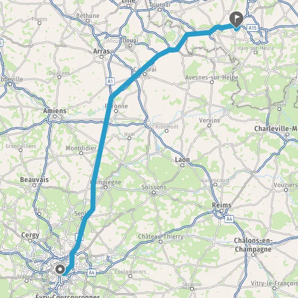 Prendre à droite et rejoindre A15 E42. Continuer sur 3,8 kilomètres