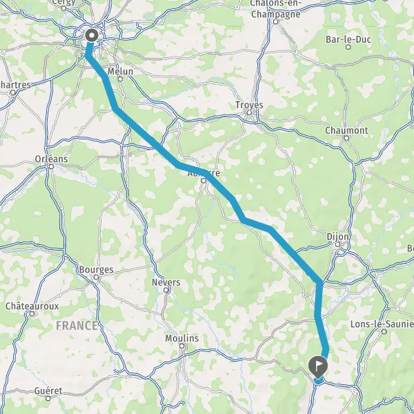 Prendre à droite et rejoindre A6a E5. Continuer sur 296 kilomètres