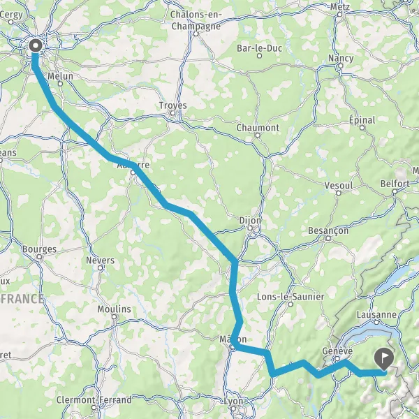 Prendre à droite et rejoindre A6a E5. Continuer sur 296 kilomètres