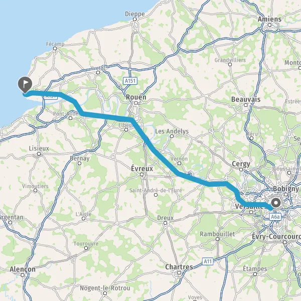 Comment aller de Paris (75000) à Le Havre (76600) en voiture ?