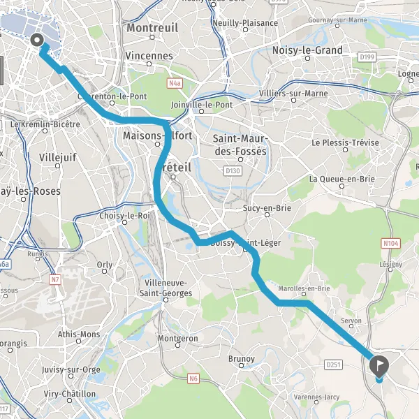Prendre à droite et rejoindre N104 (La Francilienne). Continuer sur 14 kilomètres