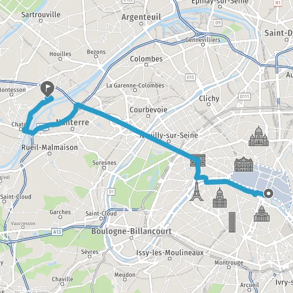 Tourner légèrement à gauche sur Rue de Bezons et continuer sur 200 mètres