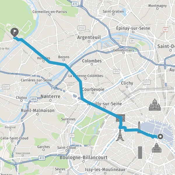 Tourner légèrement à droite sur Quai d'Orsay et continuer sur 550 mètres