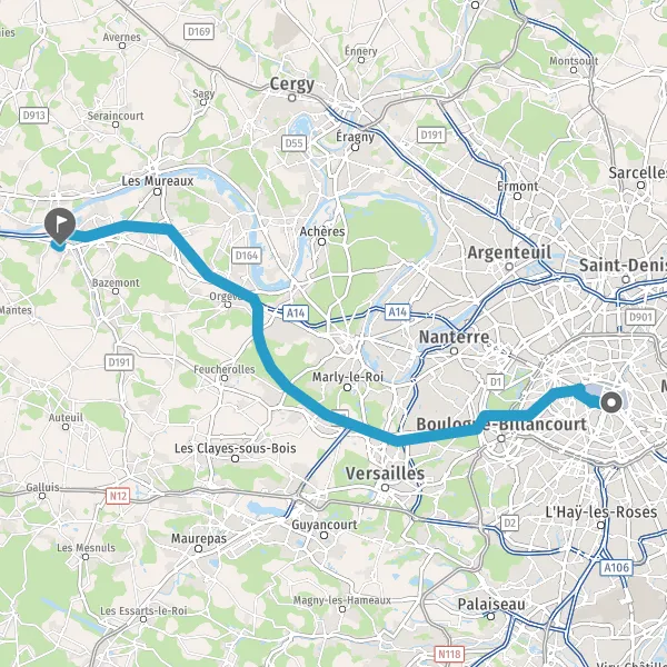 Prendre à gauche et rejoindre D130 (Route de Gargenville). Continuer sur 100 mètres