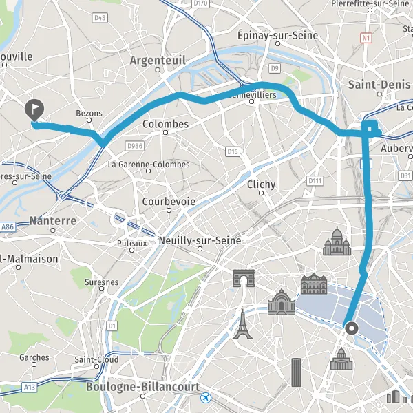 Continuer N13 (Avenue de Neuilly) sur 2,6 kilomètres