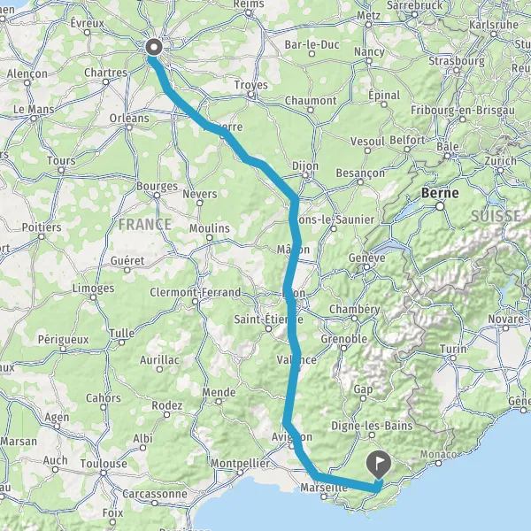 Prendre à droite et rejoindre A6a E5. Continuer sur 296 kilomètres