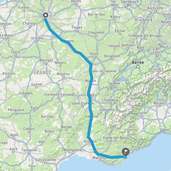 Prendre à droite et rejoindre A6a E5. Continuer sur 296 kilomètres