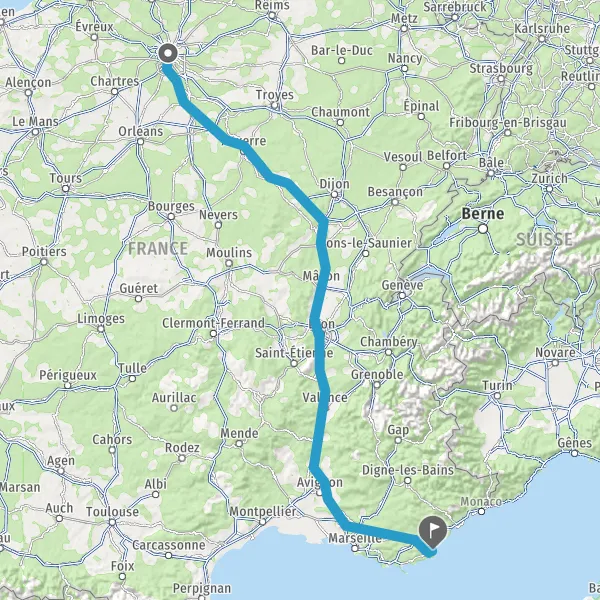 Prendre à droite et rejoindre A6a E5. Continuer sur 296 kilomètres