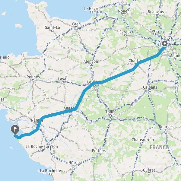 Continuer E501 (L'Océane) sur 165 kilomètres