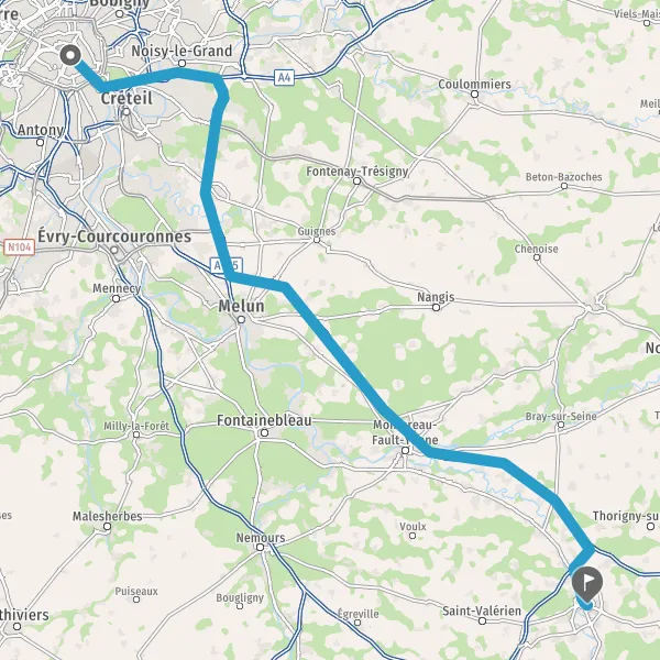 Prendre à droite et rejoindre N104 (La Francilienne). Continuer sur 21 kilomètres