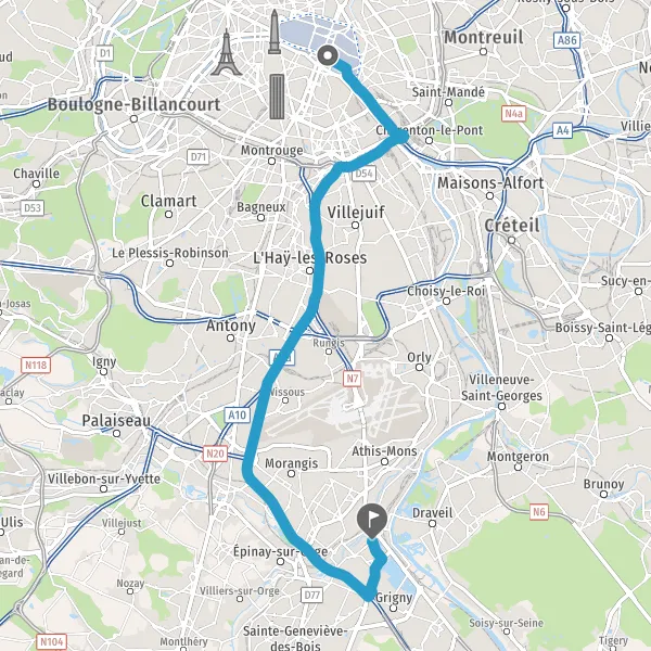 Prendre à gauche et rejoindre A106. Continuer sur 3,1 kilomètres
