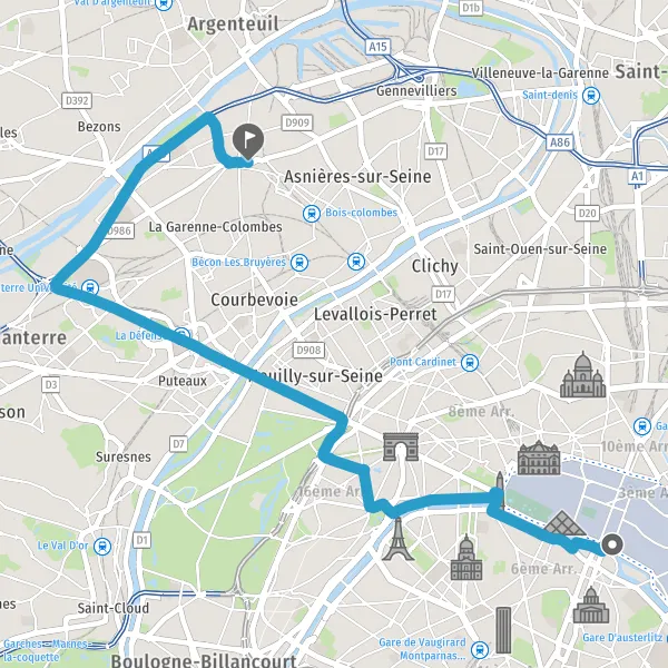 Continuer D908 (Pont de Courbevoie) sur 150 mètres