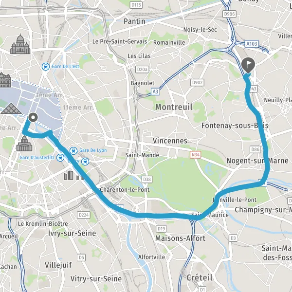 | Distance en voiture | 12,5 km à 18,4 km |