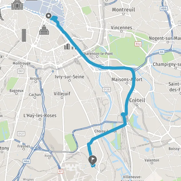 Tourner légèrement à gauche sur Quai de la Rapée et continuer sur 500 mètres