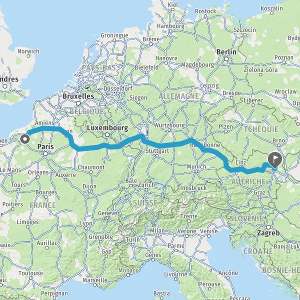 Prendre à droite et rejoindre A3 A3 E56. Continuer sur 217 kilomètres