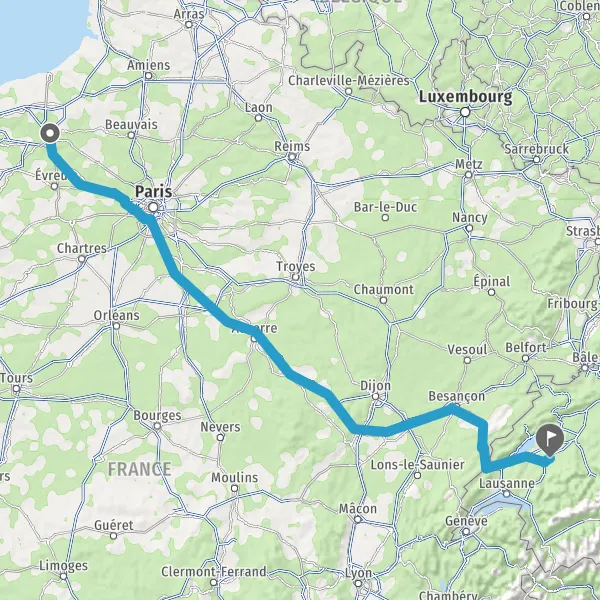 Prendre à droite et rejoindre A13 E5. Continuer sur 59 kilomètres